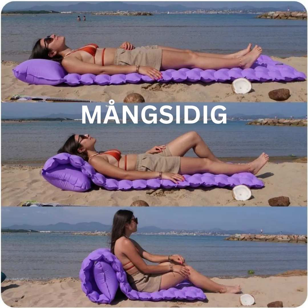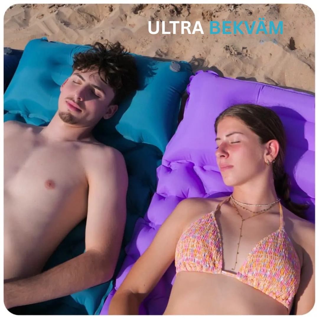 Vi har utvecklat den enda uppblåsbara madrassen i världen som kan användas utanför tält och dessutom är 100 % vattentät.